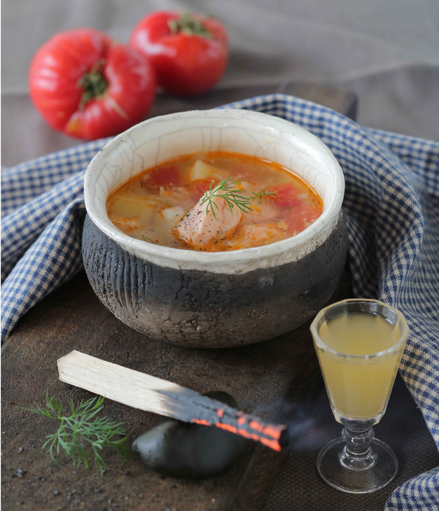 Можно подать уху с горящей лучиной, и перед подачей потушить ее в ухе для придания дополнительного аромата.